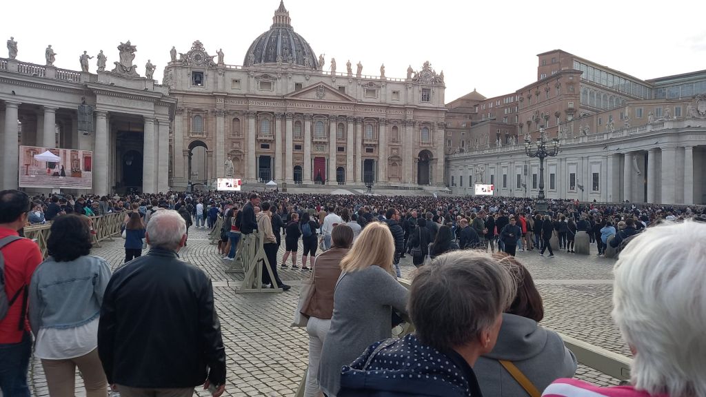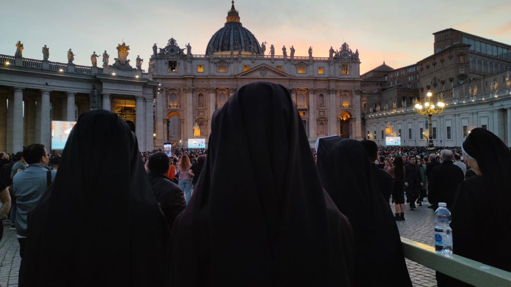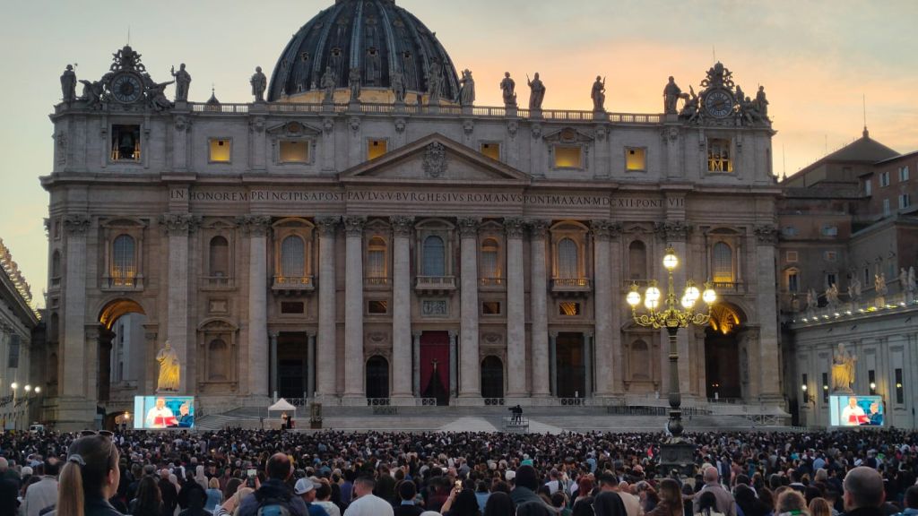 Prière à la mémoire du pape François, place Saint-Pierre à Rome, le 21 avril 2025
